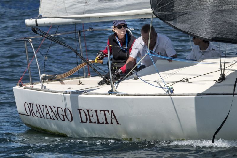Janette Syme is skipper of Kaotic in the J/24 division. She won the opening race and placed third in the other two to be placed third overall leading into the final day, today.